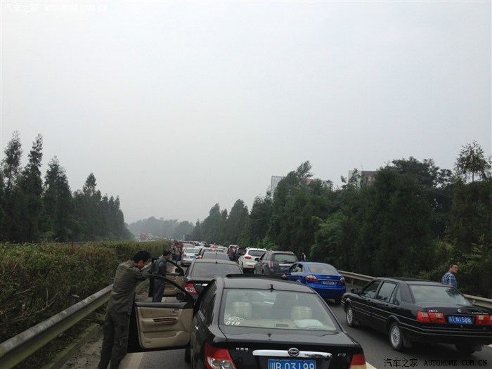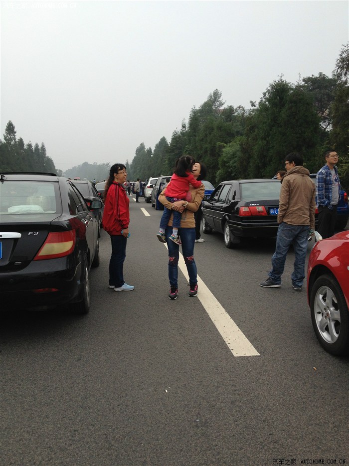 8:00多在蒲江服务器看到人山人海的心想嘿等下前面的高速肯定没车,一出服务区没跑到10公里就这样的。前面的这个车是李白故乡江油来了听说早上3点就出发了。真是辛苦啊。。。。