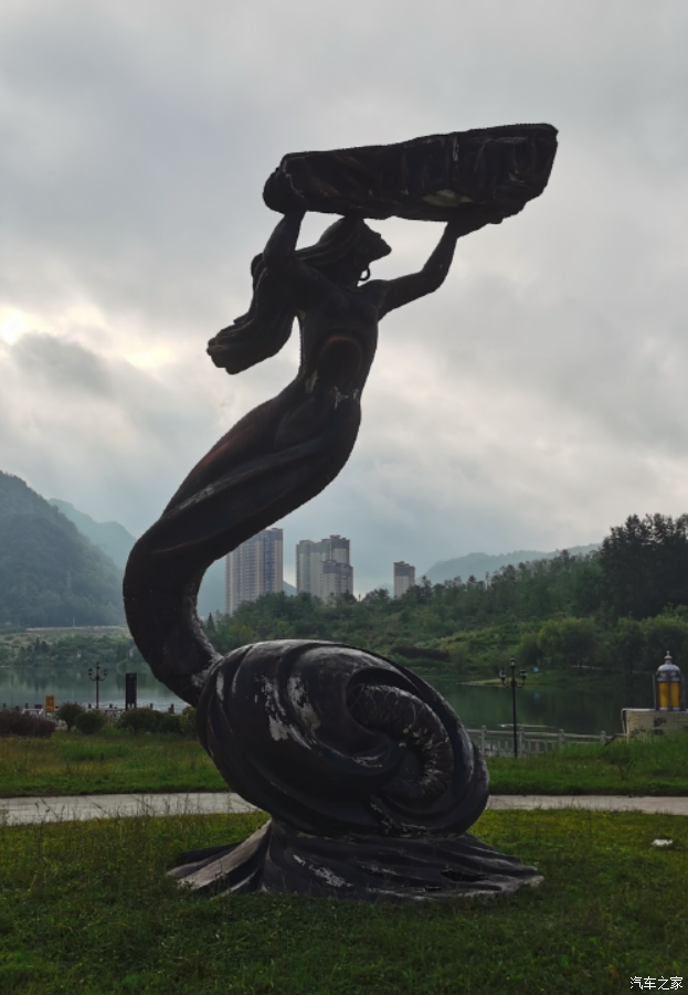 湖边还有一座雕塑,应该是女娲补天吧(我猜的)。