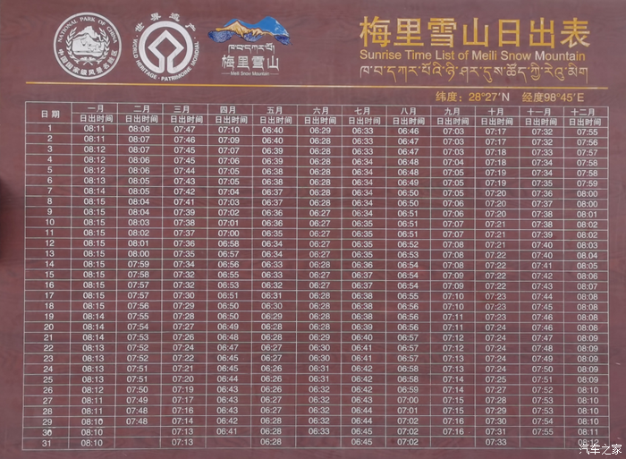 在观景台上拍了一张梅里雪山日出表,明天能否见到日照金山还要靠缘分。