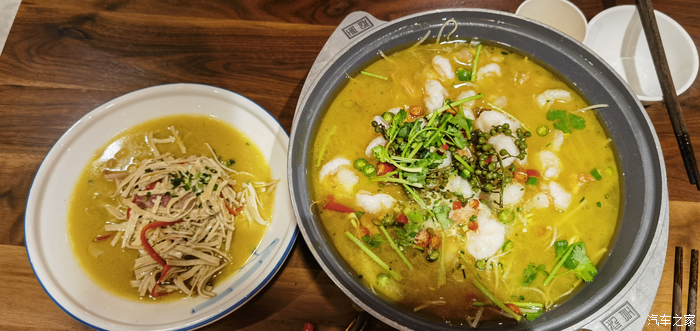 在大众点评找了家餐厅,点了两个菜:金汤虾敲煮鲜菌、咸宁火腿烩千张,都好吃,味道很赞,干掉三碗饭。