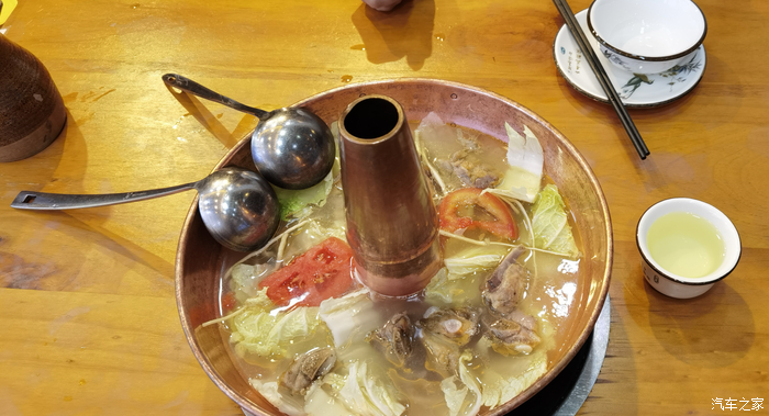 逛累了,就在古城里点了个腊排骨火锅,据说是云南特色菜,腊排骨挺多的,味道可以接受,两人能吃饱。