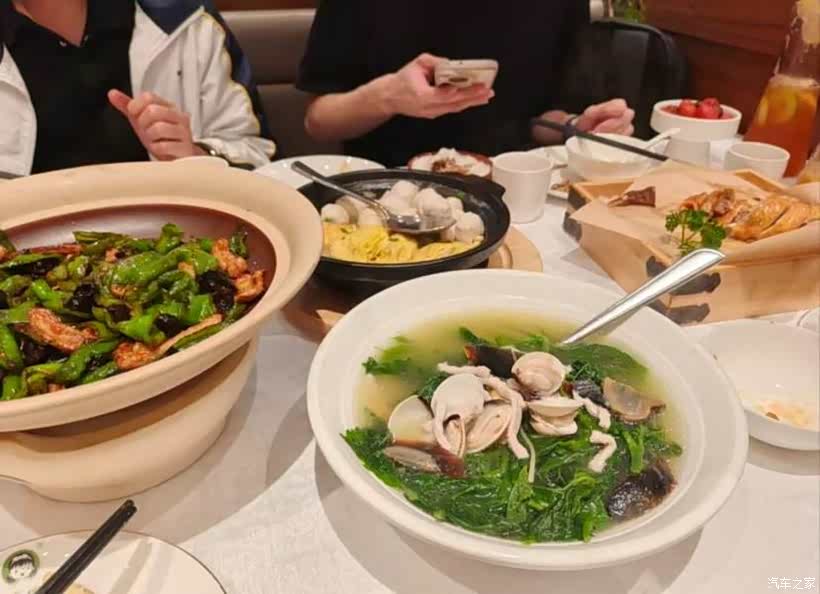 没等多久朋友到了,简单店里几道家常菜,味道确实还可以,吃完饭聊了会儿就准备走了,下楼看到我这车他还挺喜欢的,问我充满电能跑多远,我还真没专门去测过,按平时用车的情况估算,标称的430km续航,少说也能开到350km吧,达成率还是不错的。不过他的第二台车已经确定是MPV了,没办法,他得顾一大家子,两个小孩都上小学了,还有老人要照顾,车就只能往大了买,偶尔想要体验下我倒是能找机会借给他开开。