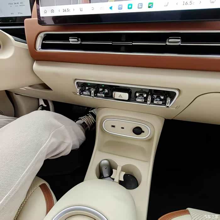 车里质感做得也不错,这就是国产车的强项了,十来万也能给人上档次的感觉,车里软包面积很多,大屏幕也有,最有意思的是中控台实体按键,我个人是喜欢这种伸手就能盲操的设计,也有人喜欢那种在屏幕上点的方式,见仁见智吧,用着习惯就好。