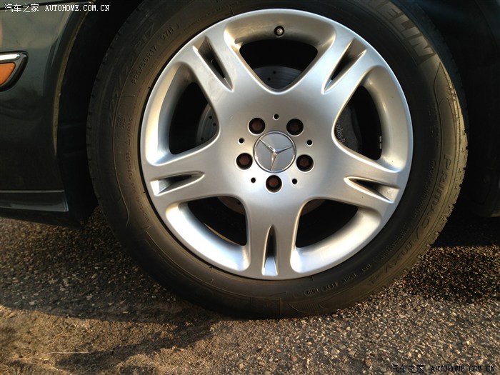 原装轮胎轮毂,没换,冬天下雪的时候胎窄点好,这个车胎真是结实耐用。里面的是奔驰的刹车盘,打孔通风,每次停车下来发现都是滚烫的,任务艰难啊