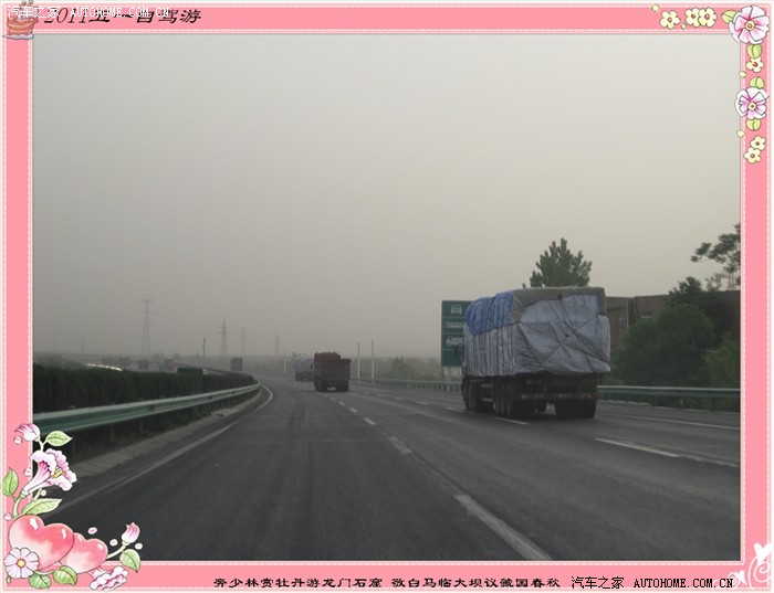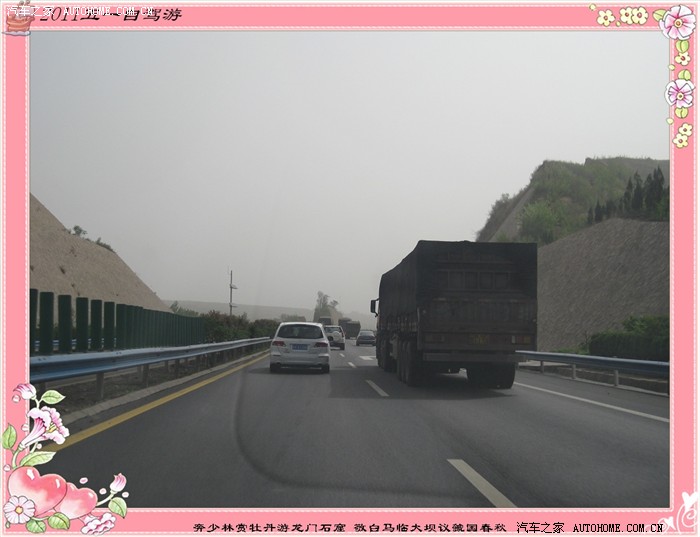 函谷关的宣传牌下,你也难以悠然,从此处开始,高速变成了两车道,而一路上你最不可能做到的事,就是可以有一分钟看不到大货车,一些加长的货车,在巨大的轰鸣声中,利用下坡将速度冲到120迈以上甚至更快。