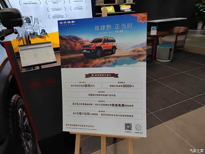 看了看展车旁边的福利政策,置换补贴最高能给8000,另外9月提车还有终身免费基础保养,这个可以啊,除此之外就是4S店送的脚垫、后备箱垫、玻璃膜啥的。