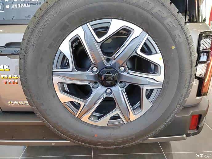 燃油版BJ40和增程版的备胎造型不一样,有着明显的区别。我看参数表上写的,轮毂是全系17寸双色的,这规格好配胎,不用费劲儿挑。