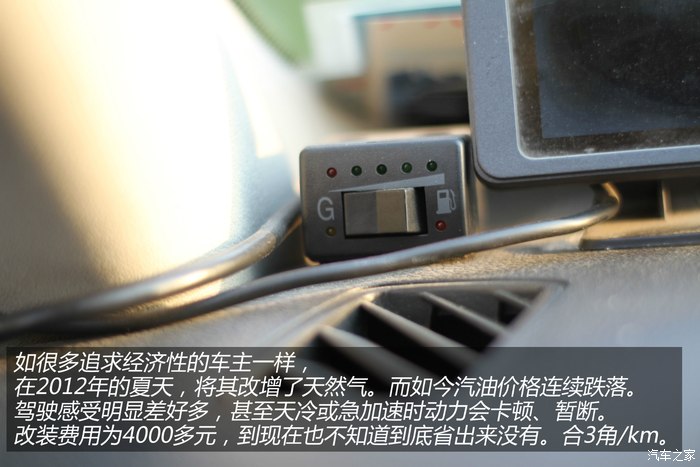 在2013年的夏天,如很多追求经济性的车友一样,给它加装了混合动力——天然气。哈哈。