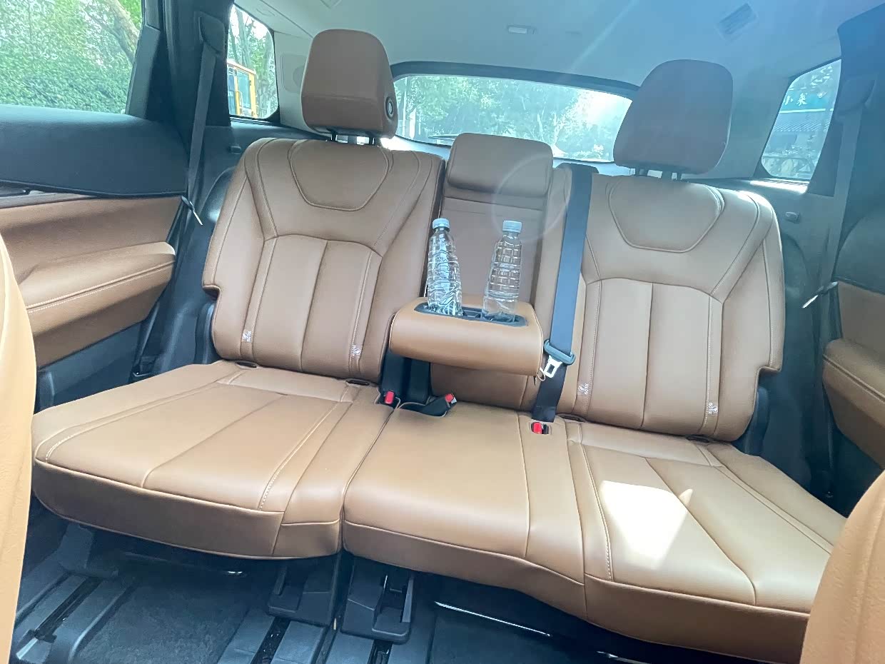 中排三个座位当收起第三排推到最后位置的时候真的很宽敞,中央手枕的空间有点大,矿泉水瓶子有点晃荡。