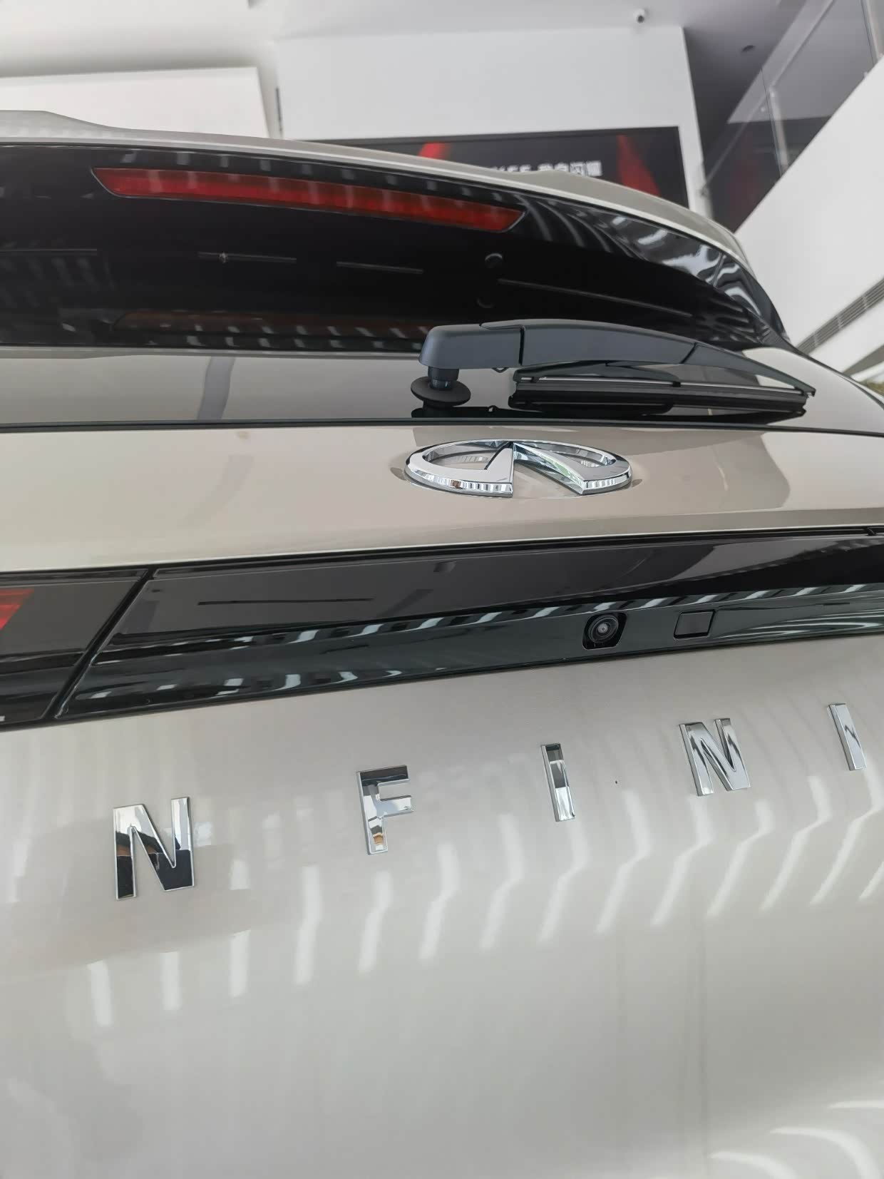略微上翘的英菲尼迪标志,有点轻奢感觉