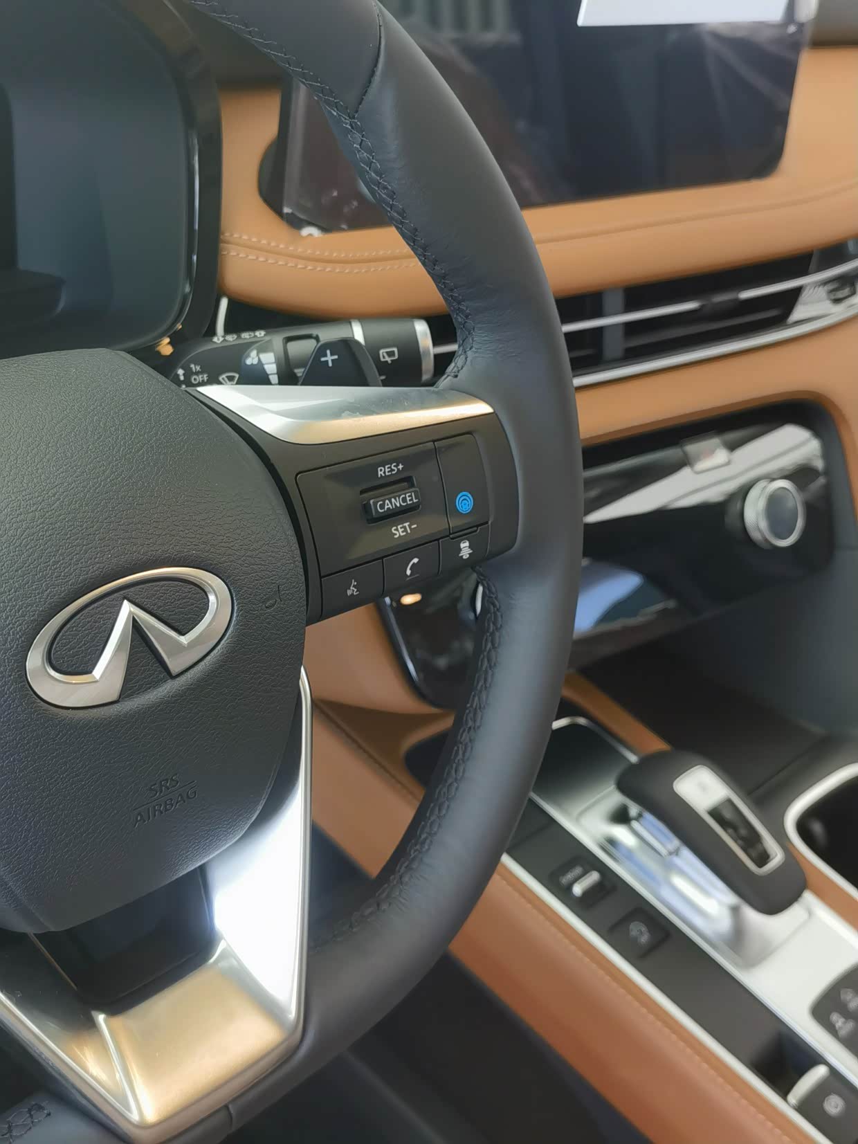 动力与底盘调校则彰显了英菲尼迪的机械素养。目前在售车型搭载全球首款2.0T VC-Turbo可变压缩比发动机,能输出252马力的最大功率和376N·m的峰值扭矩,匹配奔驰GLE等高档SUV相同的采埃孚9AT变速箱,动力输出线性流畅,低扭充沛,起步加速毫不拖沓,高速超车也能给到充足信心。WLTC综合油耗控制在9.1-9.8L/100km,对于一台自重超2吨的中大型SUV而言,这样的燃油经济性表现十分亮眼。底盘方面,双活塞减震器与多连杆后悬架的组合滤震细腻,能有效过滤路面颠簸,同时智能四驱系统提升了湿滑路面的行驶稳定性,方向盘虚位小,转向精准度优于同级竞品,兼顾了家用的舒适性与驾驶的操控感。