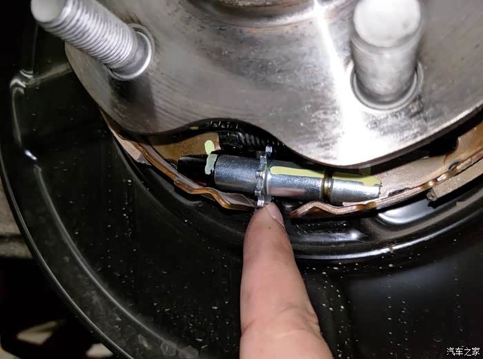 3、如果手刹线已经调到头依然刹不住,公里数比较多的车我建议拆掉后轮,调手刹里面的齿轮,里面的齿轮调过后依然解决不了,在考虑更换手刹拉线。