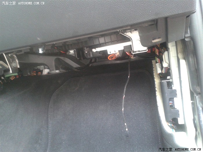 10。功放放置处(功放放在副驾驶小腿上方面板的后面空间里,面板螺丝固定后完全不影响副驾驶空间)