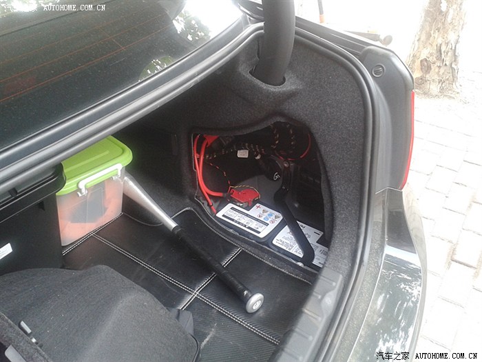 12.电瓶放置处(功放需单独供电,电瓶在后备箱,要从这里取电,用了一根特别的线从副驾驶沿着门侧面走了很长到这里取电)-请忽视棒球棒(特殊情况使用)