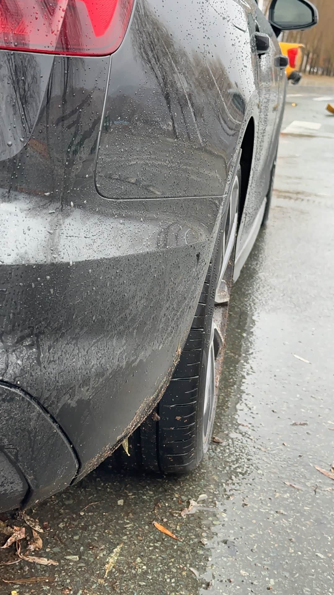这个是右后轮,因为被撞后转了一圈,右后轮侧面碰到过马路沿上过,但这么看着好像也没啥事