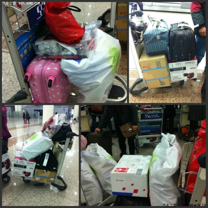 回国的人多,行李也很多,估计330才能承载这么多的分量吧。当初还说不给小日本赚我们的钱,可是日本却的确有很多质量好,值得你买的东西。可惜米有限还是忍吧,这次出行团费8500,买东西花了8000,除了团队餐吃东西花了2000,总花费1万八左右一个人(还是很节省的方式。)哎好好存钱以后有机会去去北海道吧。。。。。