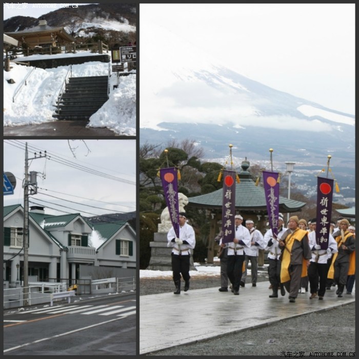 渐渐的感觉到了寒意,来到舍利白塔下,这里供奉的释迦摩尼佛的舍利,这里充满了肃穆气氛,看到脚边雪白的雪很兴奋呀,在我们春城记得就是9几年下过一次雪之后就再也没有机会在春城看到雪了。由于今天天气超级晴,富士山在身后好壮观呀,全貌我们都看到了,很幸运。