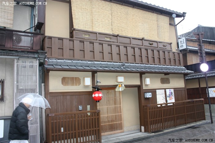 电影《艺妓回忆录》中的祗园花见小路,大家记得吗,现在我们就要来祗园艺伎街了。这里保持了京都的历史及街貌,由于我们来的时候在下雨,所以很可惜没有遇到外出献艺的艺伎小步急行的窈窕身影。导游介绍说这里河边上最贵的艺伎餐厅吃饭要10万円。