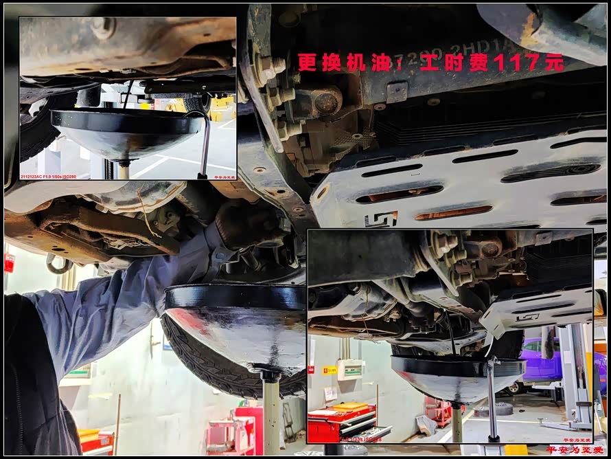 我这车加装了护板,所以换机油时需要拆卸护板,之前尝试过不拆护板,用漏斗接放出的机油,但师傅说,机油滤清器虽然可以从上面拆,但也会有机油漏出,到时不好清理,不如直接拆护板,然后放油和拆机油滤清器都从下面进行操作,放出的机油。看着颜色也挺深的了,这是才跑了5000公里的机油啊,不知是否正常。