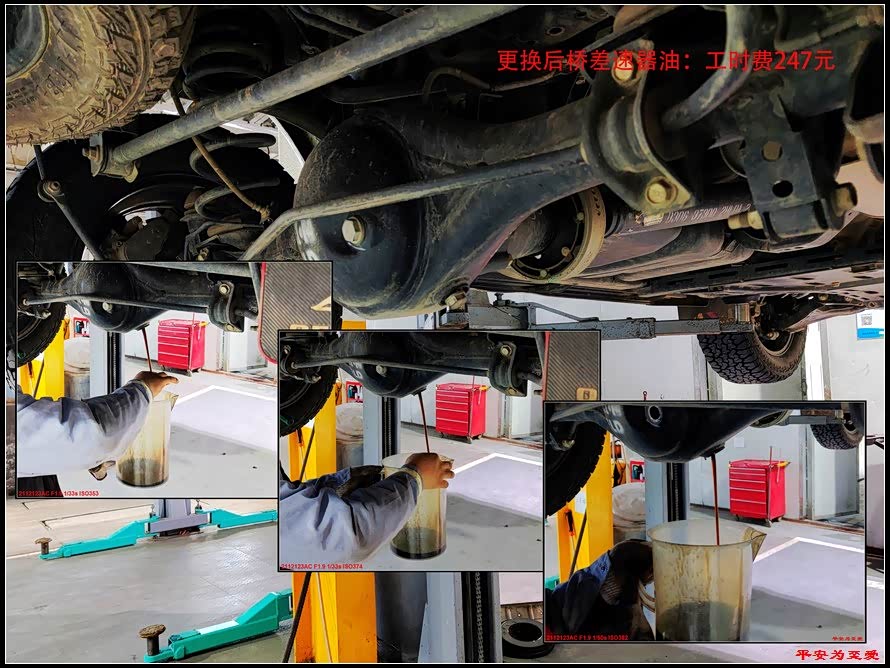在放前桥差速器油的时候,换出来的油很黑,维修师傅说确实该换了。