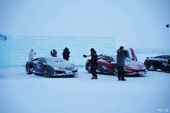 乘坐大巴车到达冬测场地,一堵用冰砖堆砌的墙前停了一排帅气的车辆,顿时让小伙伴们兴奋起来。
