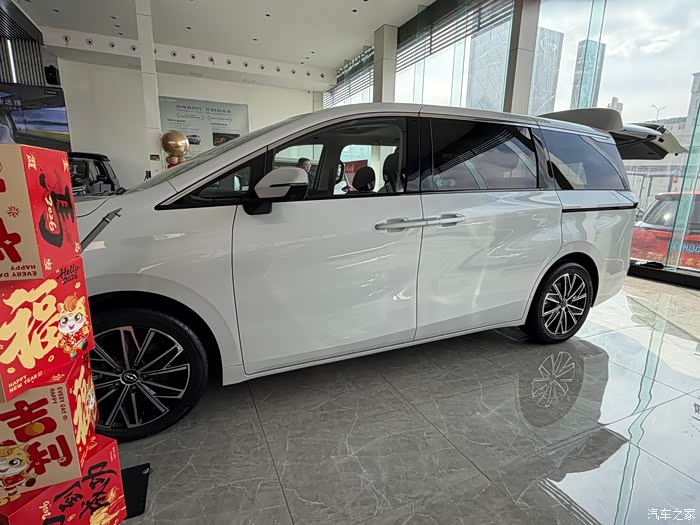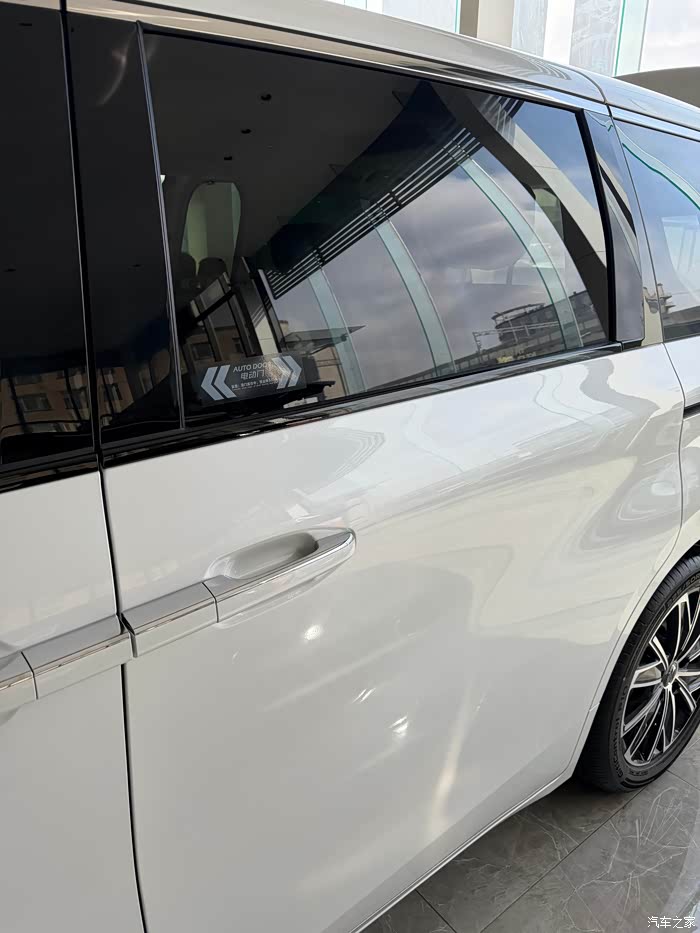 转到车身侧面,就是典型的MPV经典轮廓,线条规整又实用。一条贯穿式腰线,从车头一直延伸到车尾,让侧面看起来更修长;再搭配半悬浮式车顶设计,弱化了MPV的厚重感,多了几分精致感。最让我惊喜的是,这台车配备了双侧电动侧滑门,这个配置在同级别里真的很良心,不管是上下车还是拿取物品,都特别方便,家用质感直接拉满。