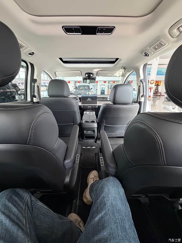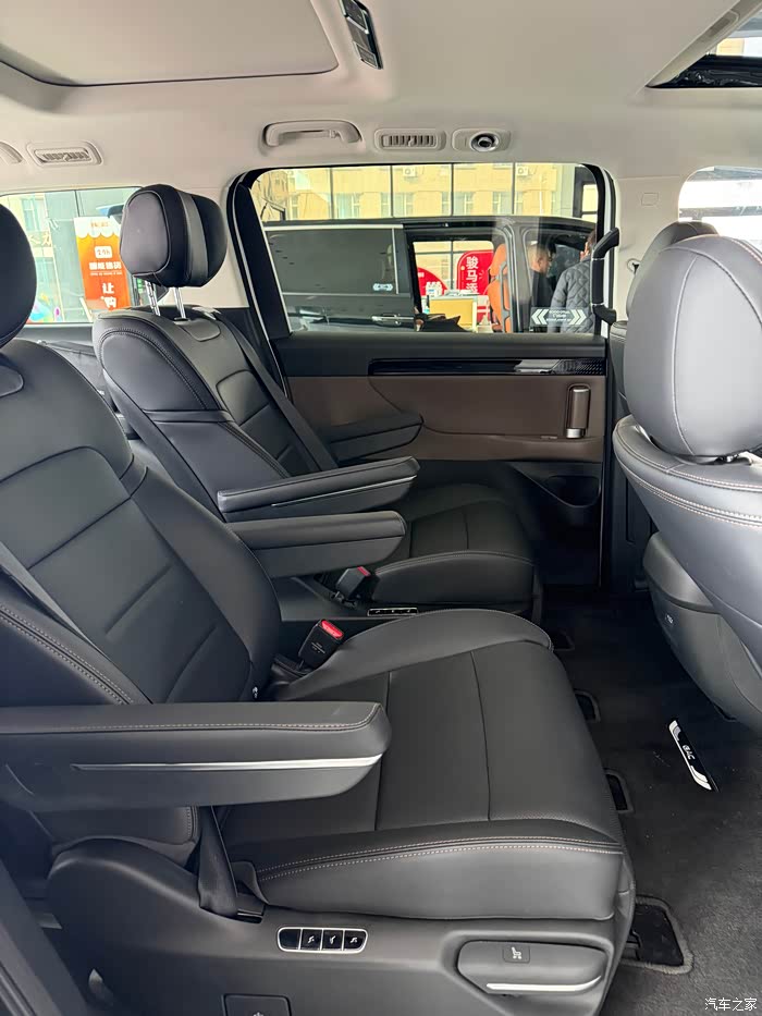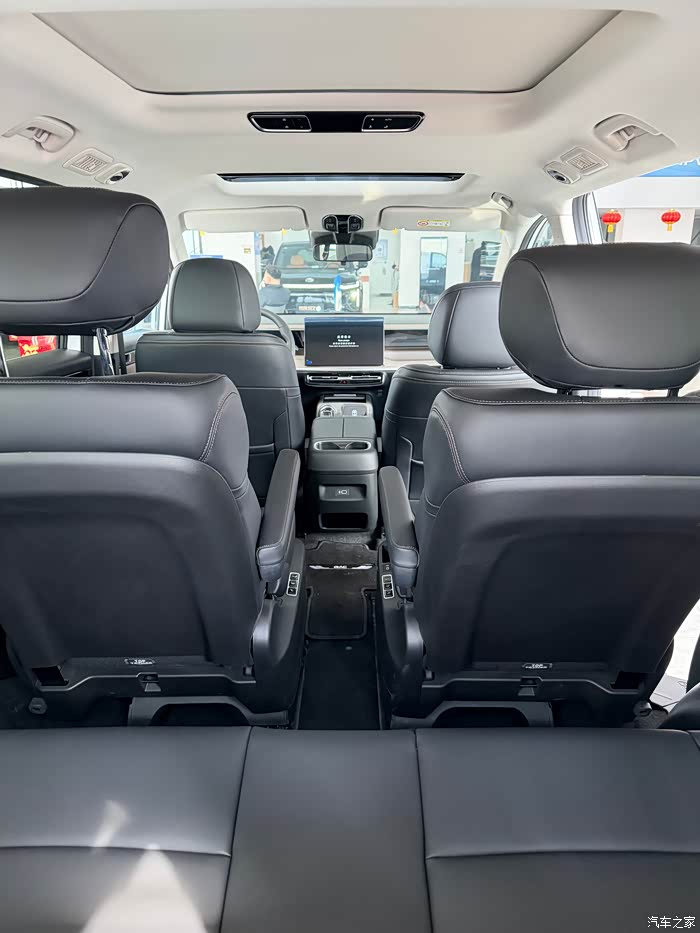 两个独立航空座椅中间,还预留了宽敞的中央过道,进出第三排的时候,完全不用反复挪动第二排座椅,上下车特别顺畅。平时带孩子出行,家长在前后排之间穿梭照顾孩子,也格外方便,日常家用的便利性直接拉满。