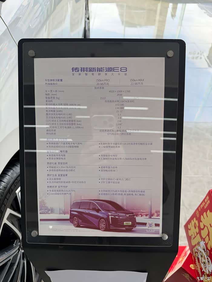 第一眼见到传祺E8实车,第一感觉就是舒服、不浮夸。现在市面上不少新能源车都喜欢做特别夸张的前脸设计,线条凌厉、造型激进,看多了反而有点审美疲劳,但E8完全走的是务实家用的路线,没有花里胡哨的设计,耐看又大气。