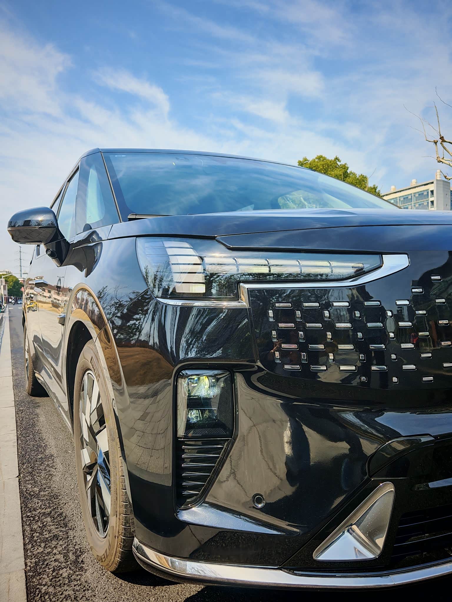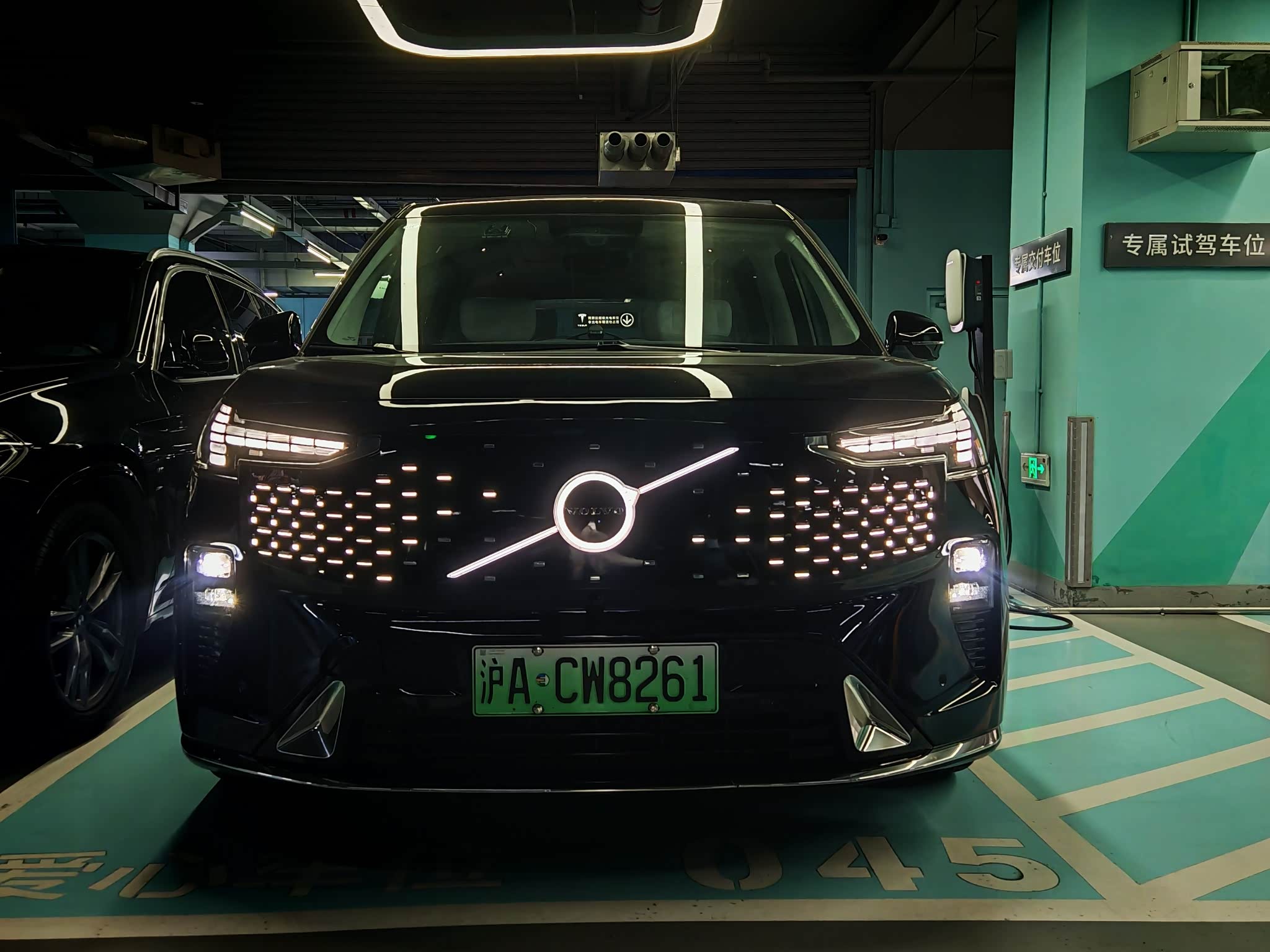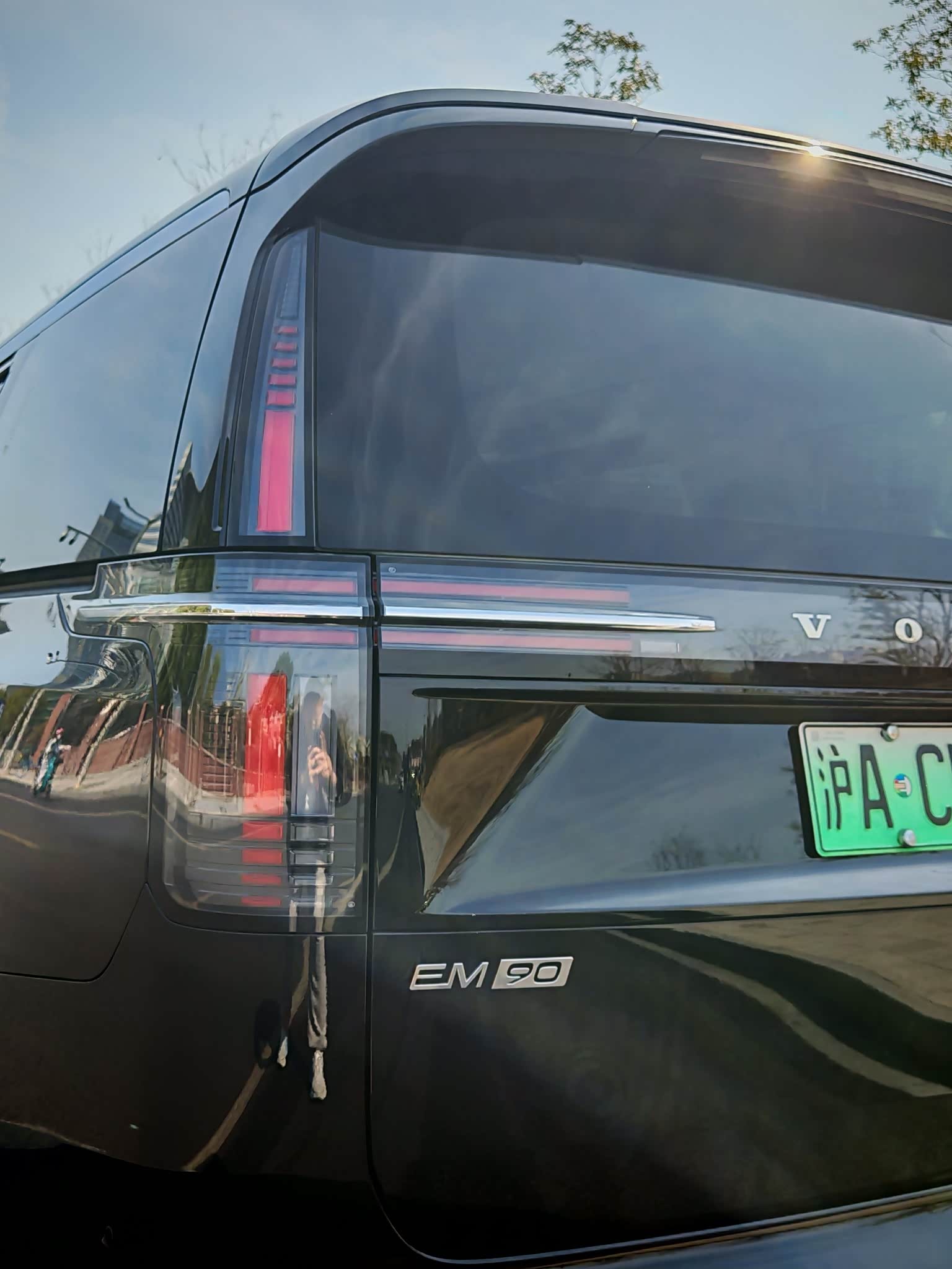 说完了补贴,咱们回头来聊下车。EM90继承了EX90的经典轮廓,外观线条流畅,现代感十足,每一个细节都尽显沃尔沃对品质的追求与对美学的理解。车头部分标志性的“雷神之锤”LED日间行车灯极具辨识度,而极具天才创意的“星河动态格栅”则为整辆车增加了高级感和品位感;车身侧面线条简洁而优雅,展现出一种低调的奢华;车尾灯设计造型独特,灵感来自于上海中心在黄浦江中的倒影,堪称点睛之笔。
