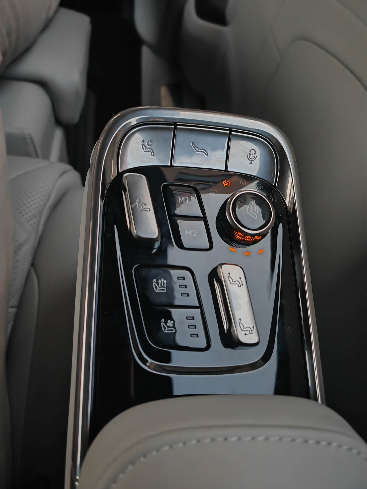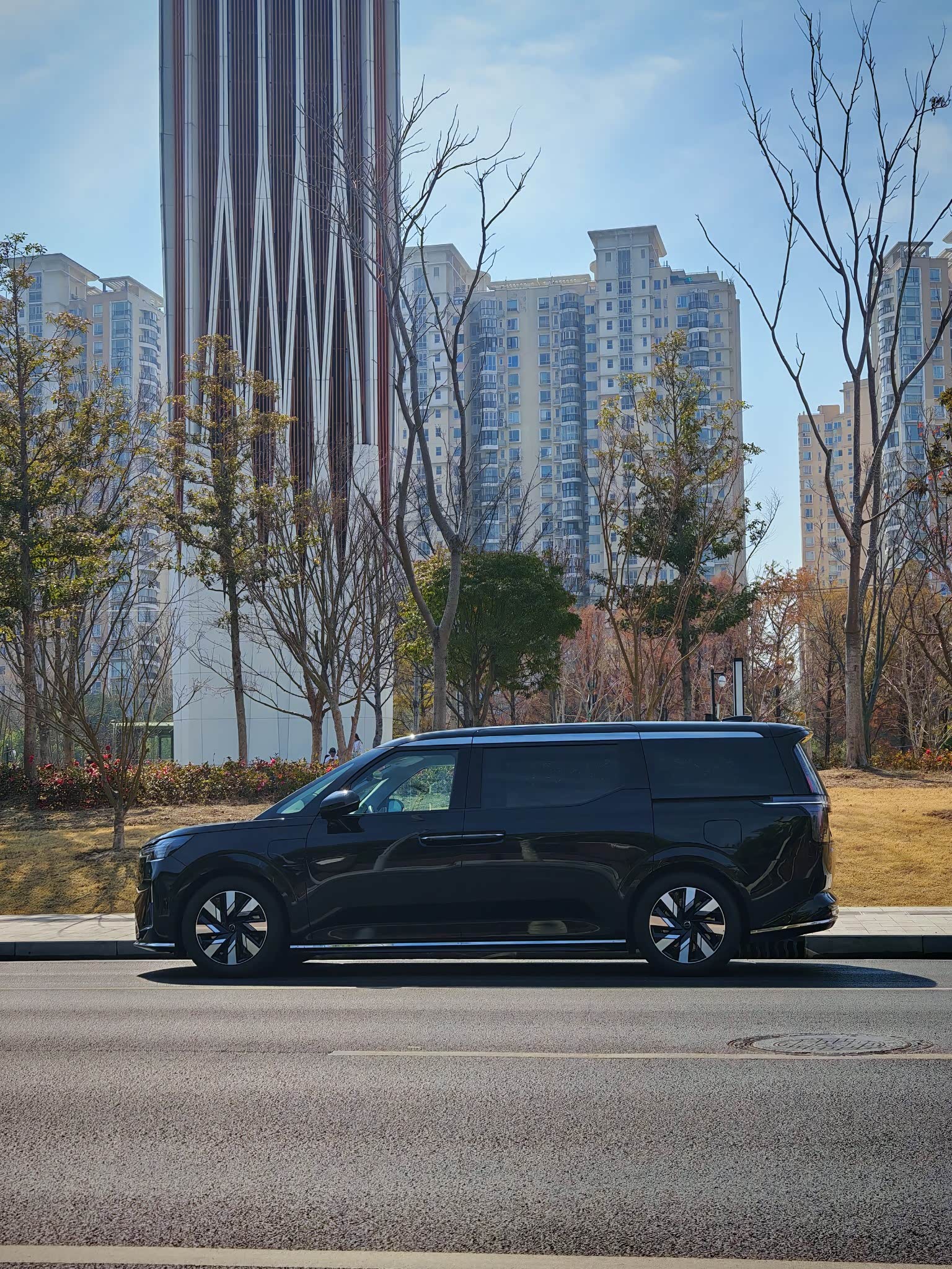 试乘环节,我坐在了第二排老板位,一键躺平,体验一下老板的感觉~行驶在苏州河边,得益于双层夹胶隔音玻璃、单电机静谧性优化、伞频主动降噪、静音轮胎等静音手段,座舱内一片宁静祥和,奢华的空间内飘荡着由21个扬声器和高达2460W输出功率的宝华韦健音响提供的殿堂级音乐盛宴。每次刹车与起步,几乎感觉不到顿挫和起伏,连放在翻折桌板上的水都没什么晃动。这都得益于EM90独特的双腔空气悬架系统,结合电控减震器,使得悬架阻尼可根据路面通过情况自动调节,城市里的颠簸路面根本无法对乘客造成影响,EM90无愧于北欧豪华会客厅之名。