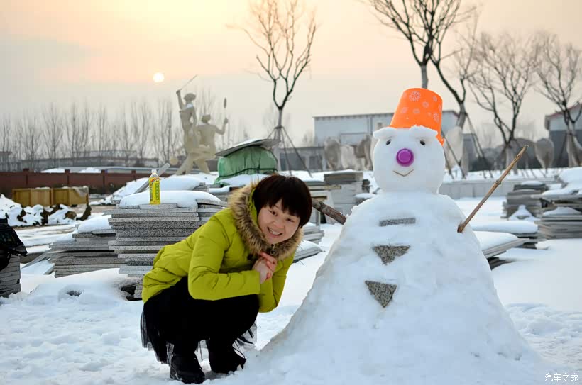 午后,雪终于停了,叫上媳妇出来一起欣赏雪景,不经意间兴起了堆雪人的念头,也不知道谁开的头,两个人一起动起手来,发挥着想象,一个雪人慢慢的成型了。
