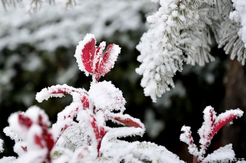 走出屋外,天地间铺着一层蓬松的白,树枝、地面、车上已经盖满了积雪,天上还在飘着雪花,脚步踩进积雪里,发出咯吱咯吱的声响。
