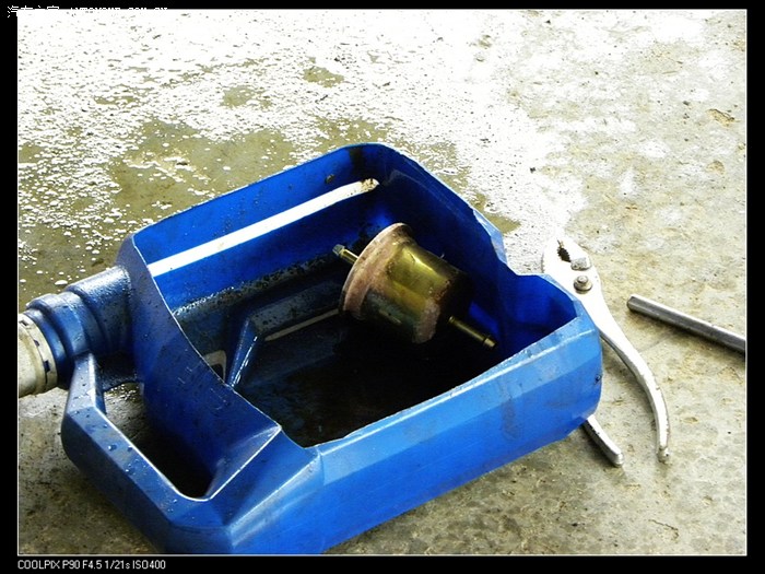 这是将旧汽油滤拆下后,油管里流出的汽油: