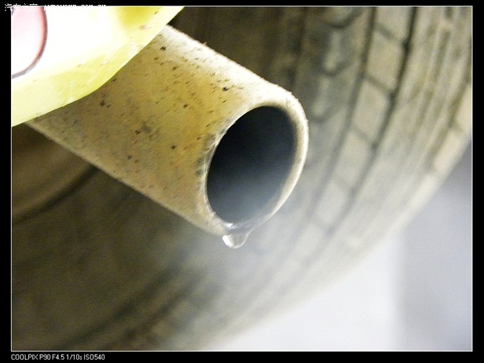 好了,大功告成,启动发动机!快11万公里的K12了,排气口还有水滴,燃烧情况很好: