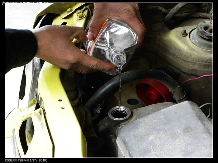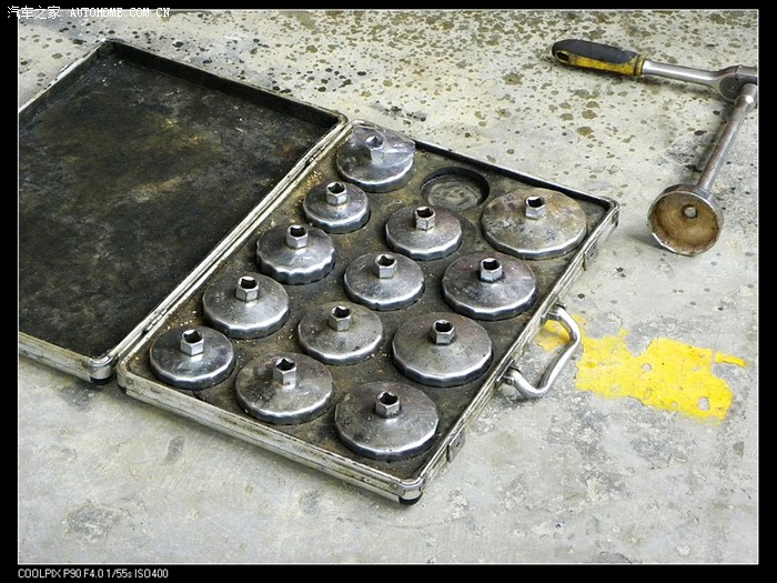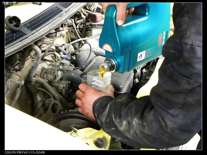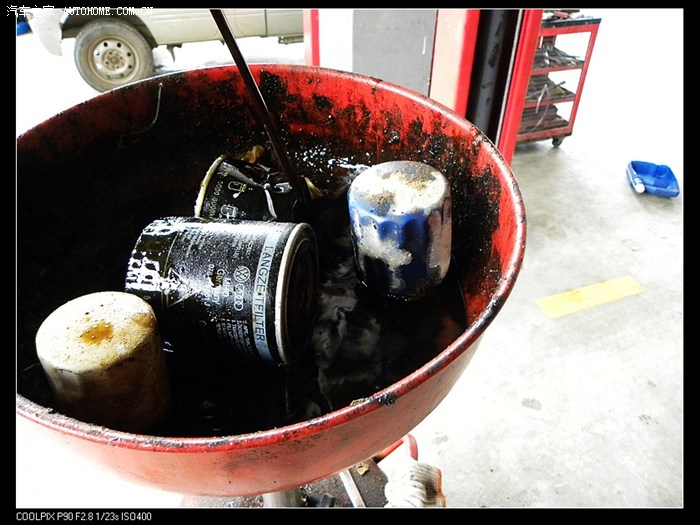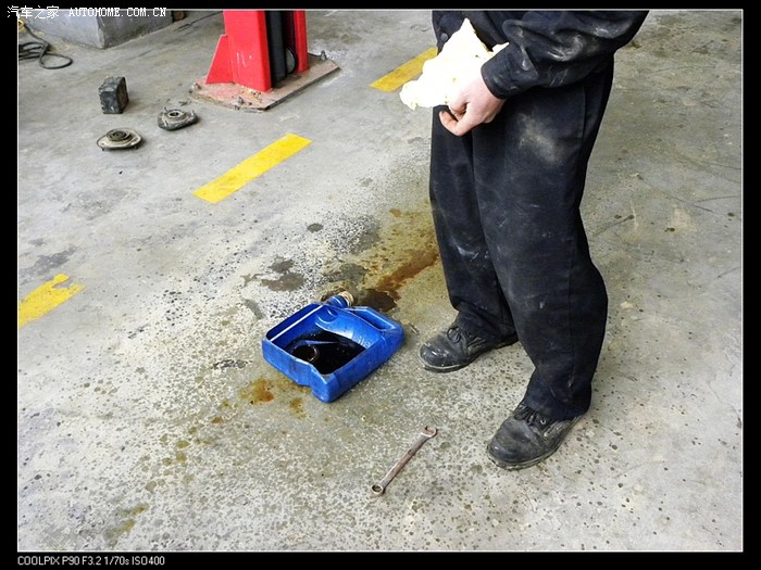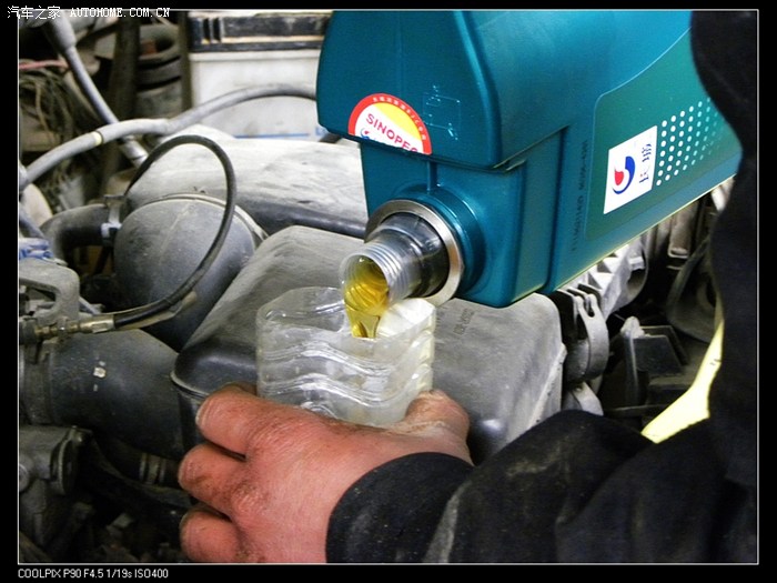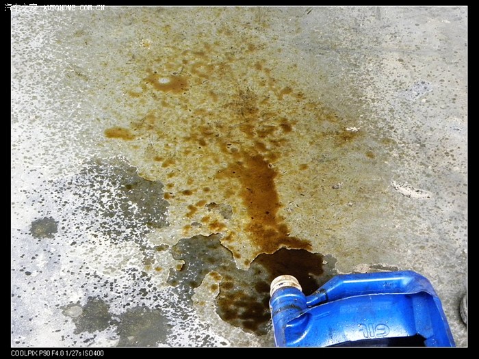 好了,10分钟到了,熄火,开始放机油。这机油总共跑了2000多公里,是长城的矿物油,100多块的那种: