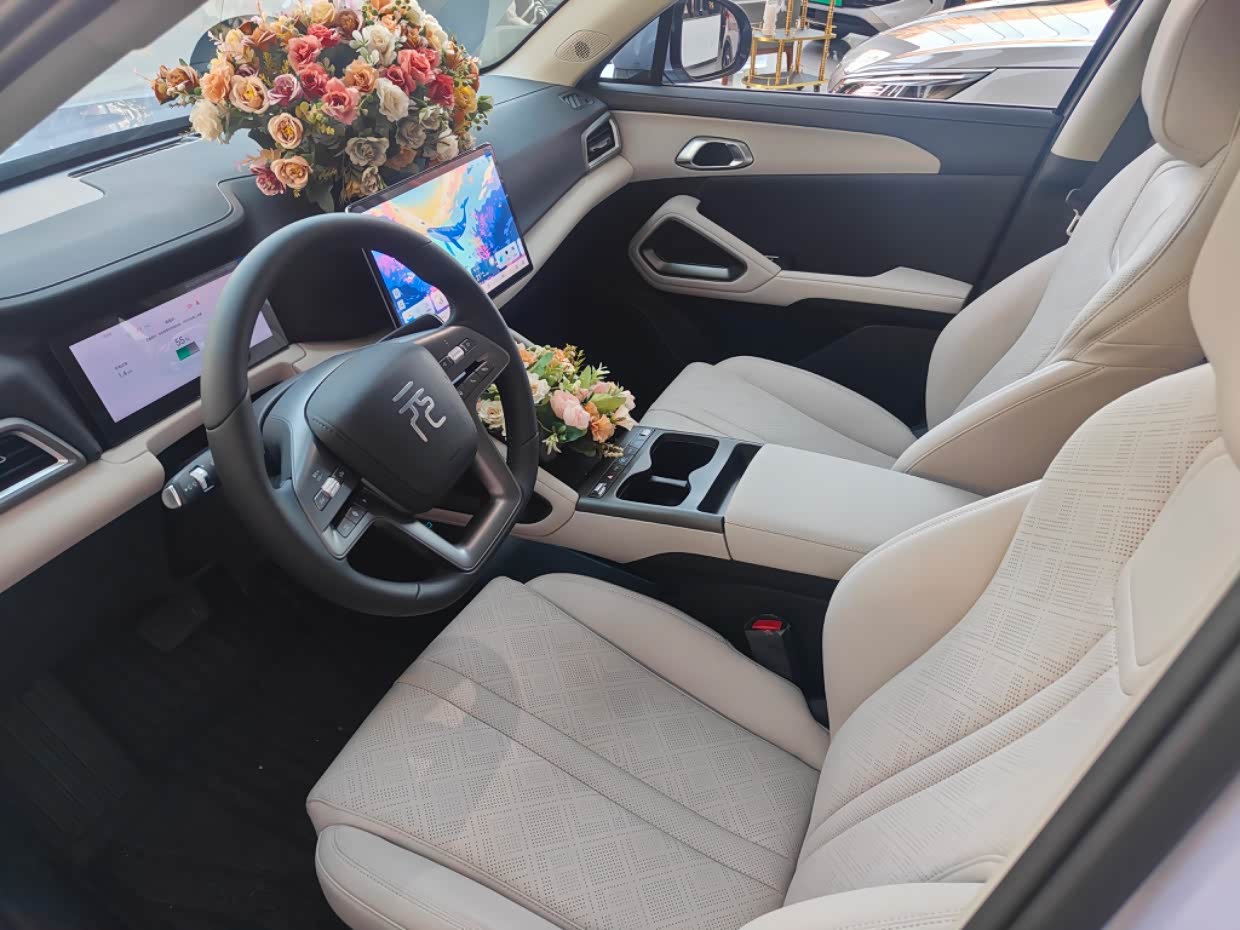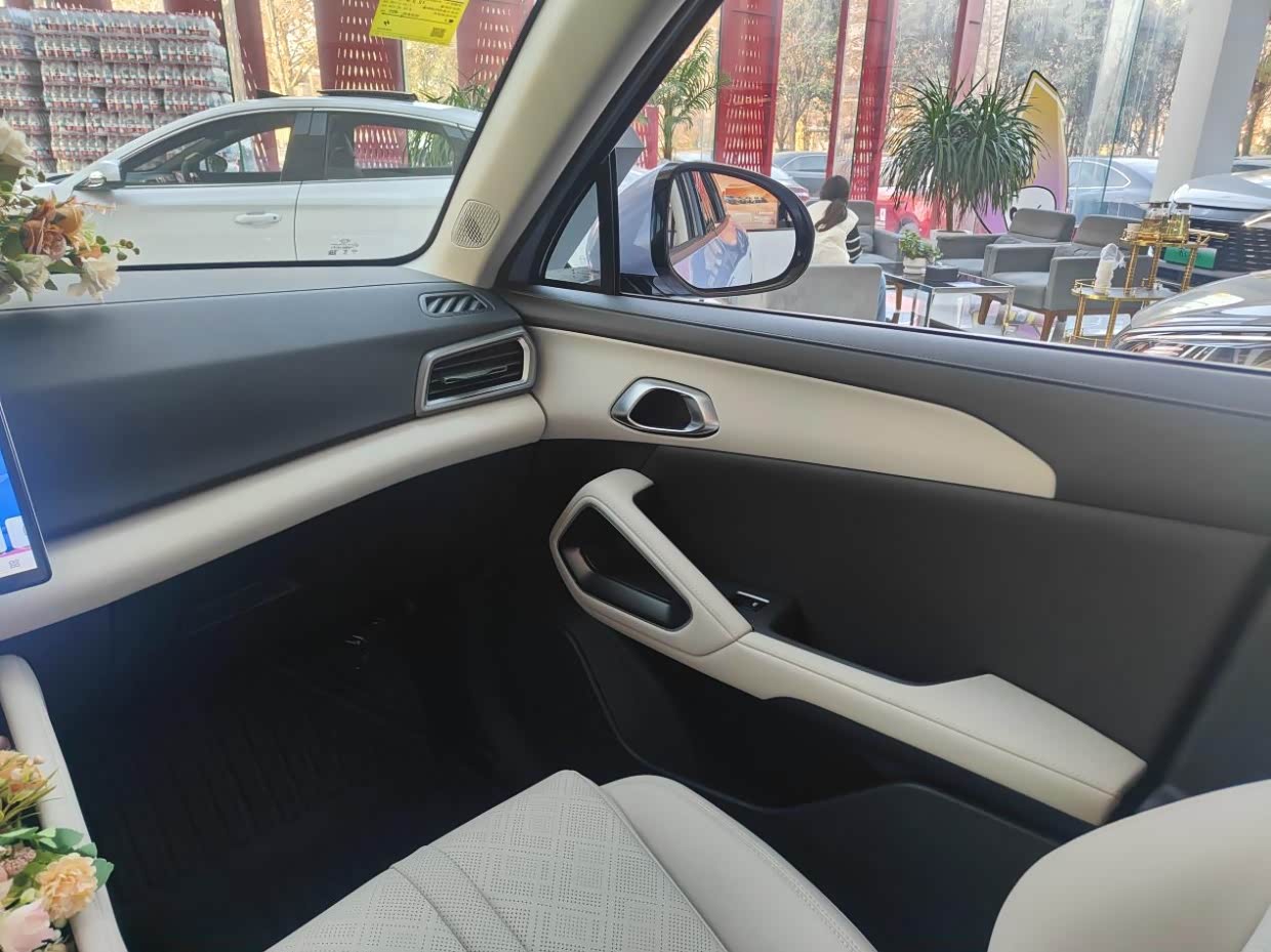 拉开车门先坐进主驾,我165cm的身高调完座椅,头顶还有一拳多空间。中控屏是悬浮的,大小看着舒服,销售演示了下语音控制,说“打开空调24度”,秒响应不用动手,对我这种开车怕分心的新手太友好了。