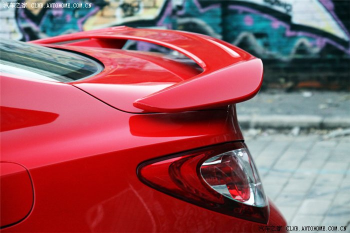 现在顺着腰线绕到车尾,腰线很自然地过渡到尾部并且分离出两条线,顺势挤压出一个小尾翼,线条流畅而且有力,很不错:另一条顺着尾灯流下来,塑造了保险杠顶部的曲线,尾灯形状和车头呼应,保留了那个尖尖的折角,圆润的尾灯顿时犀利了,屁股在这几条线的塑造下还算耐看,配合方形双排气,小尾翼,尾部比车头起码能让我多看十分钟。