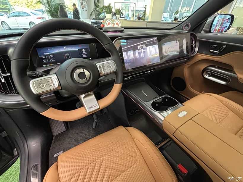 再说内饰,理想L6的实力必须要承认,它确实是把“家用”二字玩明白了。内饰那种温馨的居家风格,坐进去,空间感相当通透,座椅柔软舒服。车机操作丝滑,智能选手TOP水平。而smart #5超级电混也不逊色,超大尺寸联屏+NAPPA真皮内饰+浅蜜棕配色,高级感和科技感都拉满了。体型虽然没L6大,但内部空间差不多,得房率高,一样是大沙发般的舒适和享受。还有森海塞尔音响、256色氛围灯,就轻奢豪华范儿来说,还是smart拿捏更到位。