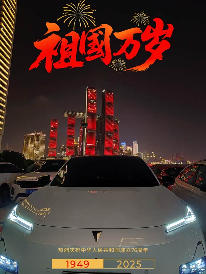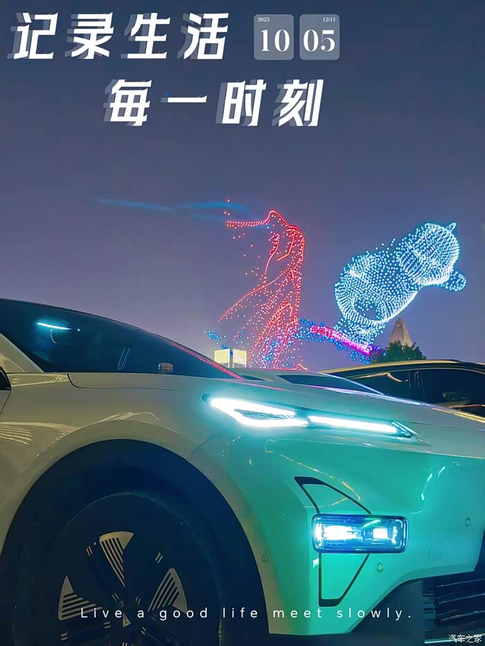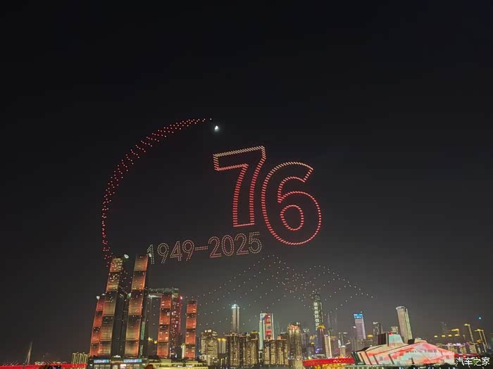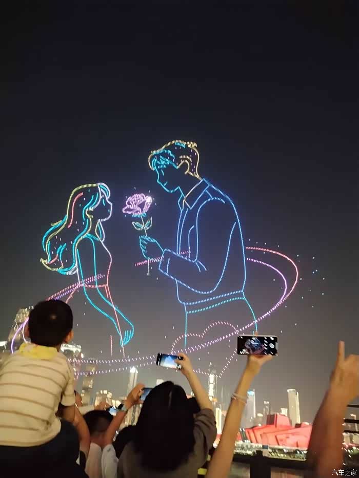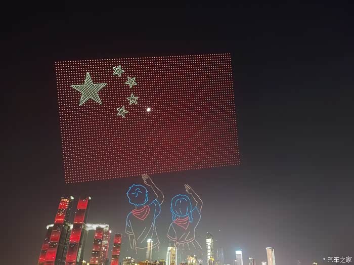 同一个位置,另外一个方向在无人机表演,虽然角度不好,但是车能拍到合影非常不错了