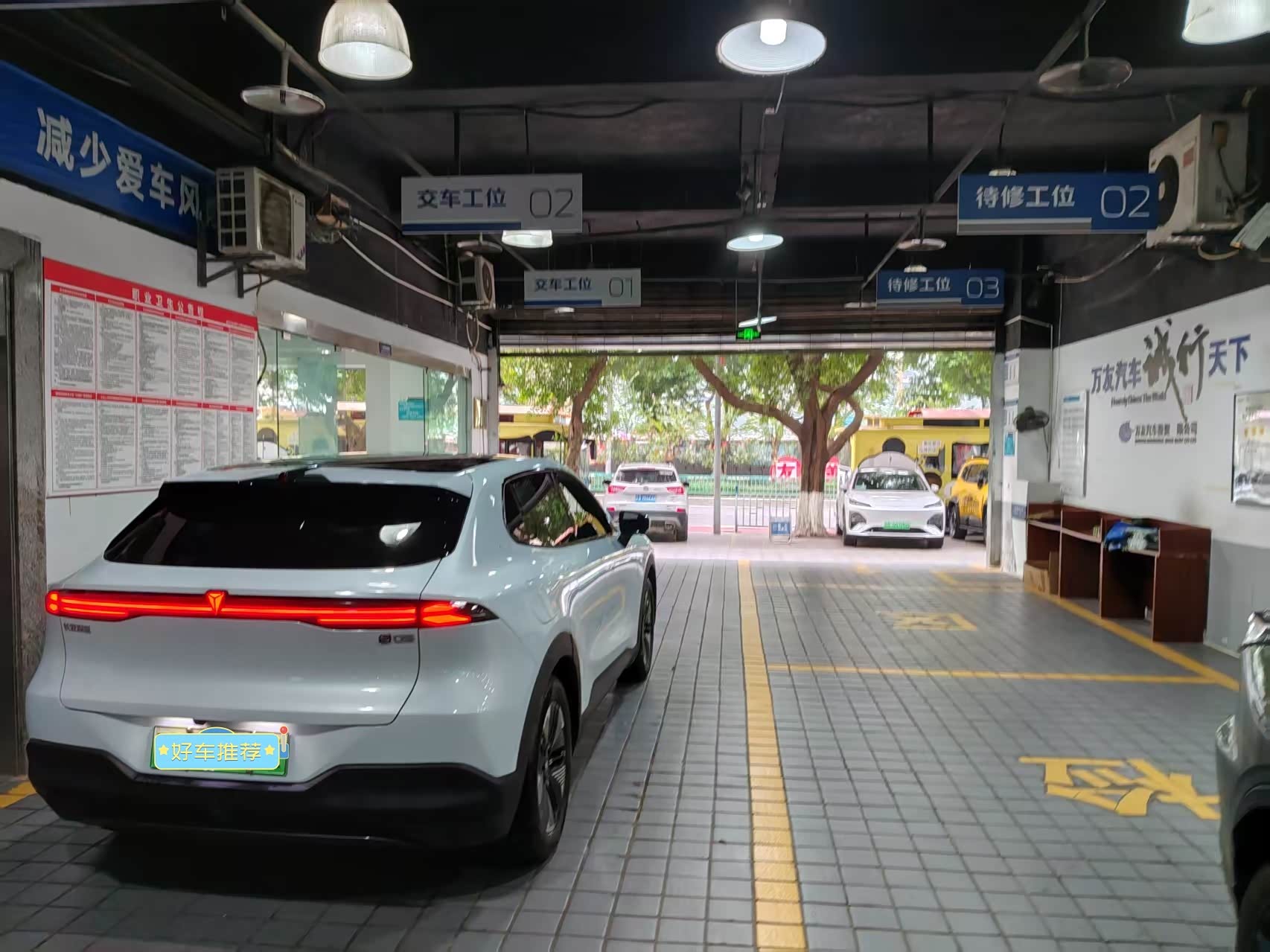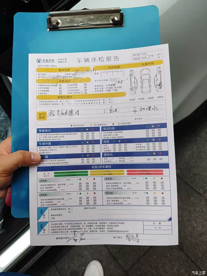 做了一个底盘检查、冲满了电,还把玻璃水加满、这些虽然是小事,但是确实让车主省心不少,点赞