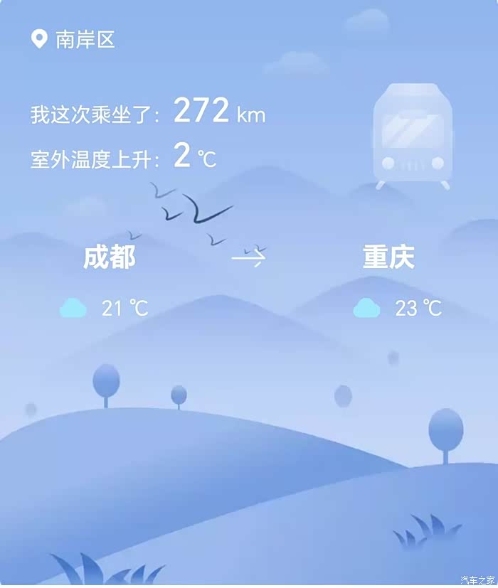 (第一天行程,能耗和知识点) 因为是假期我们自然不想赶路也不想去高速上堵车,所以选择10月1日不起早也不贪晚,在家睡到自然醒,吃好了中午饭才出发,去重庆有几条高速线路可选,用导航查看实时情况果断选择虽然比较老的高速但是不堵车,所以我们很顺利的用个3个多小时到达重庆,因为时间不长开车也不累。