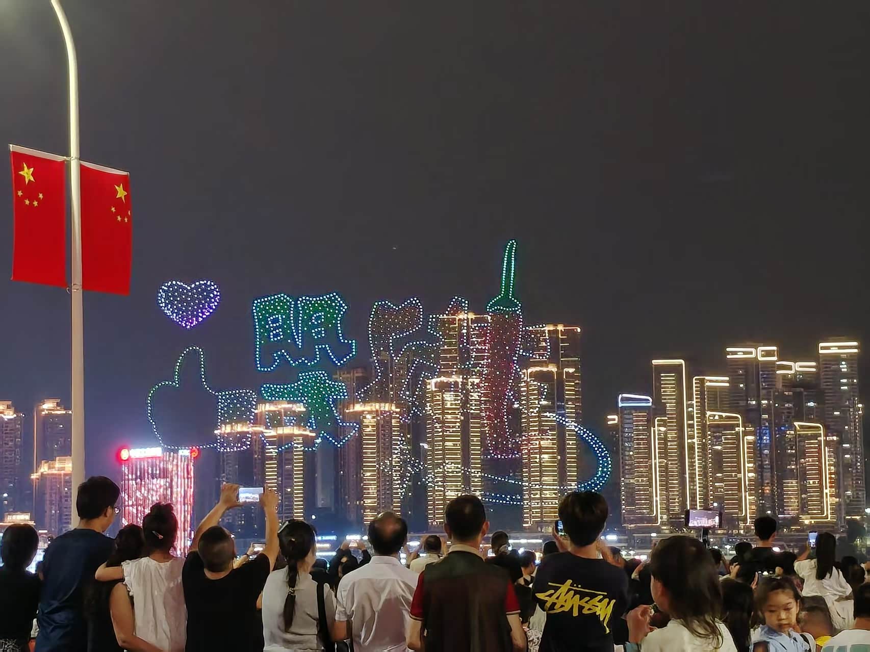 千厮门大桥看无人机表演,反方向的角度,不如第一天的好
