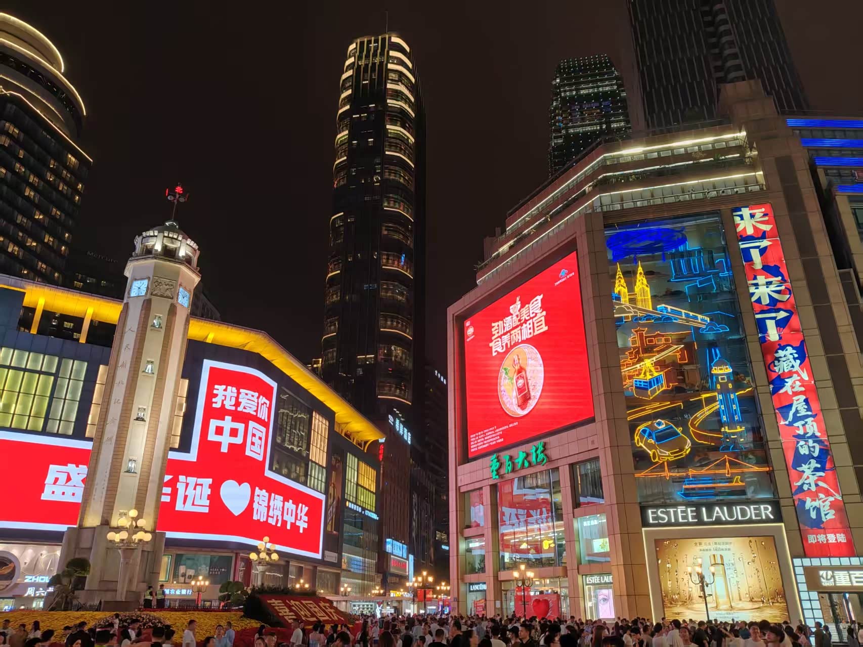 晚上的解放碑、人山人海
