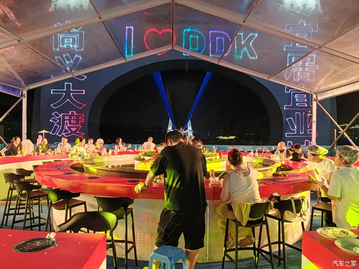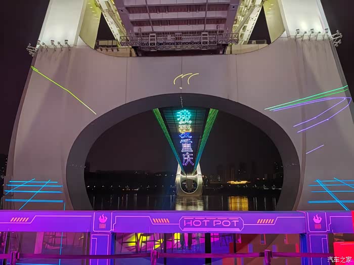 晚上坐在江边尤其是这个大桥下,一遍观看激光秀,一边吃火锅,这个感觉非常好,