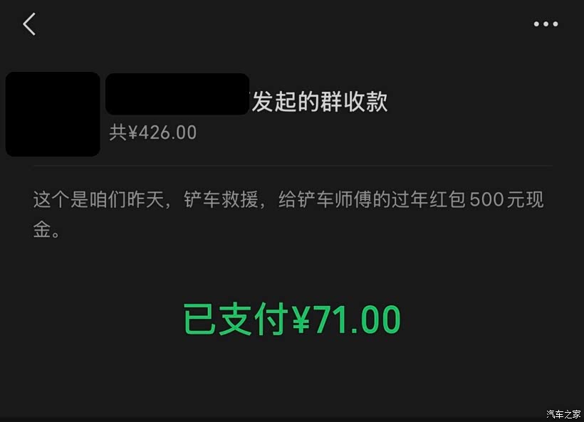 事后给铲车师傅500元答谢费,这钱是大家A的。