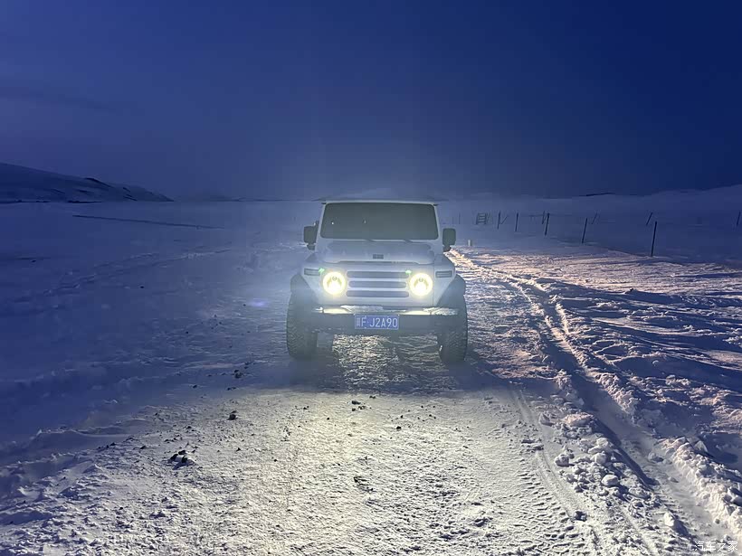 我当时是第三车,刚开始是FJ顶雪,顶不动了换坦克700顶雪。咱车凭借轻量化改装在雪地上飘着走,飘不动了让坦克300拉回来继续往前飘。后来遇到一块地方的雪非常厚,飞不起来,只能不断地冲雪,直到冲出一条路来。