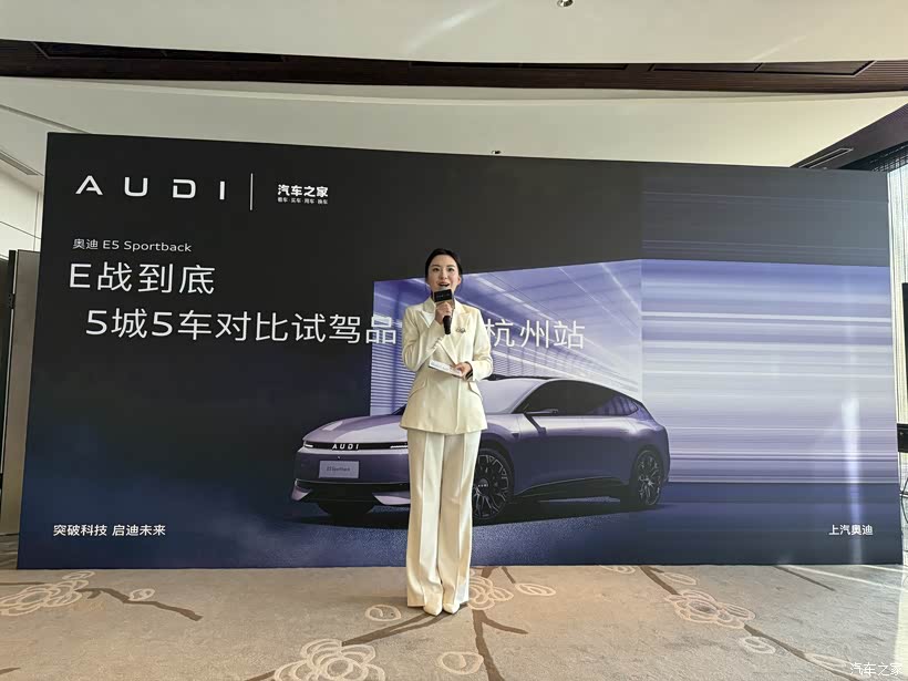 12月6日,我怀着无比期待的心情,驱车前往杭州萧山区世界旅游博览馆浮湘阁,参加汽车之家组织的“奥迪E5 Sportback E站到底——5城5车对比试驾品鉴会”。