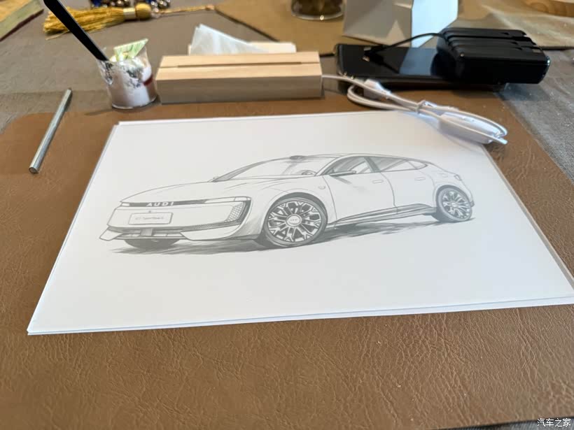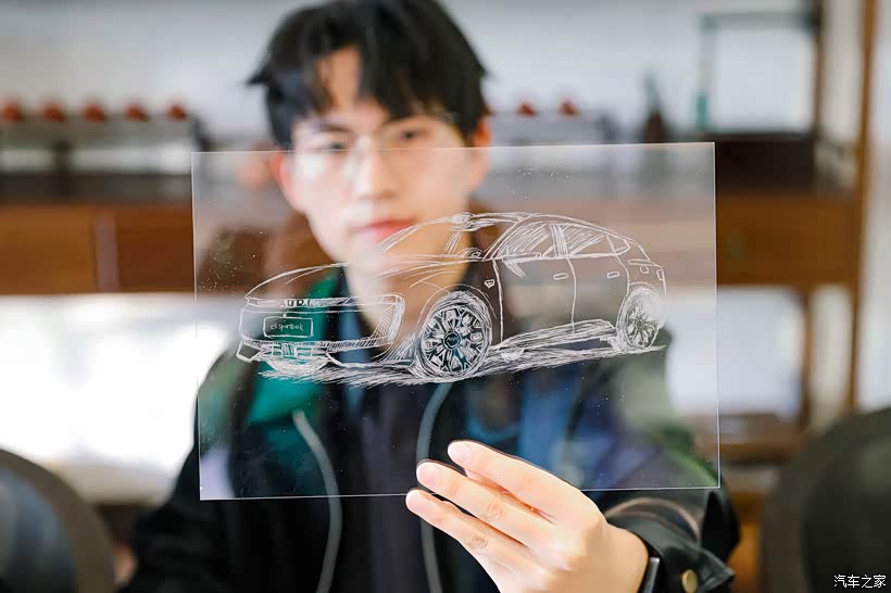 在老师的指导下,我们在亚克力板上用钢针临摹奥迪E5 Sportback的素描画。