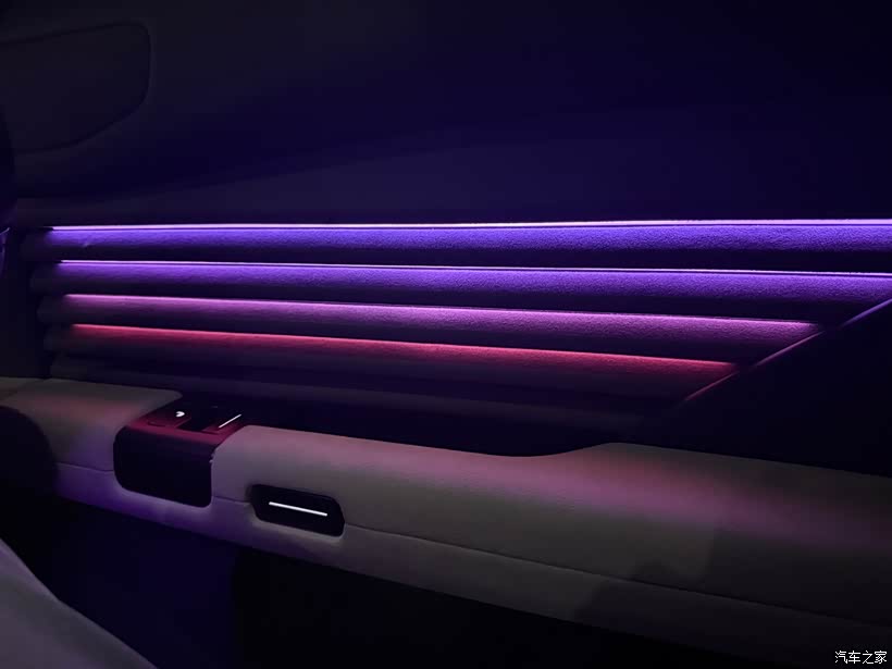 车门精选天然材质组合,采用受现代建筑启发的3D立体木纹饰板镶嵌设计,以柔和光线营造座舱氛围,温馨而高雅。