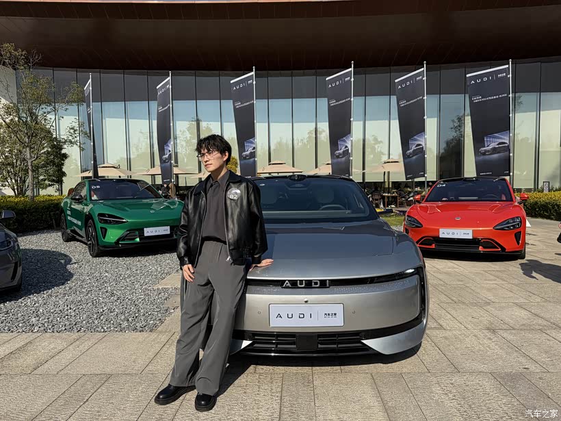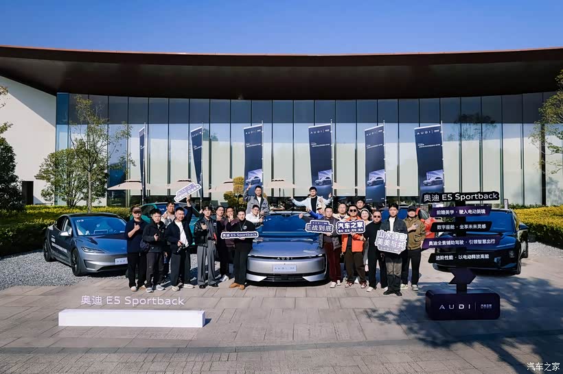 培训结束后,我们拍下了第一张合照,随后便迫不及待地前往车辆静态展示区,开启与奥迪E5 Sportback的全面、静态、零距离接触。